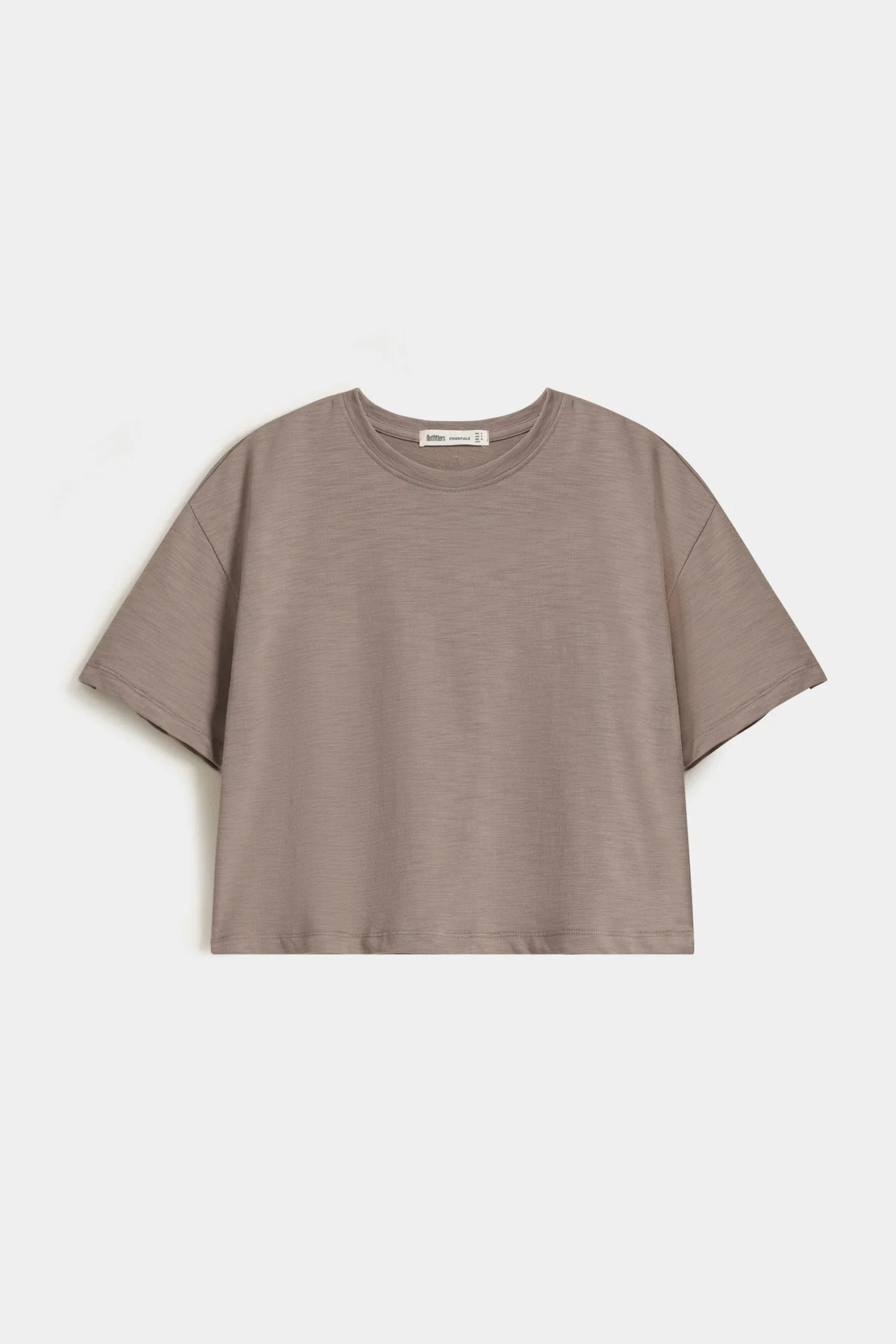 This basic cropped boxy t-shirt is perfect for any casual look. Made with soft and breathable cotton, it’s a comfortable choice for everyday wear. Dress it up or down for a versatile addition to your wardrobe.